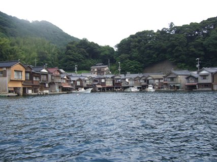 ガイドブックの写真と比べると、舟屋群が遠景すぎて。