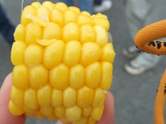 「とうもろこし購入チケット」を買うための長蛇の列ができていました。
