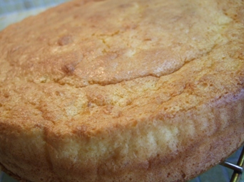 このケーキ、卵白と卵黄を別立てして膨らましています。