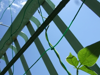 ゴーヤや胡瓜のように、螺旋状のツルを伸ばさないモロッコ豆が、