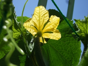 胡瓜の雌花が、あちらこちらで咲き始めてた!