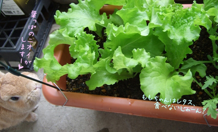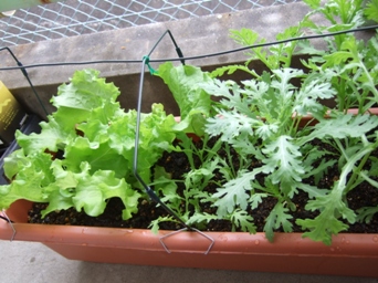 普通のプランターに蒔いた、リーフレタスと春菊が育ってきました♪