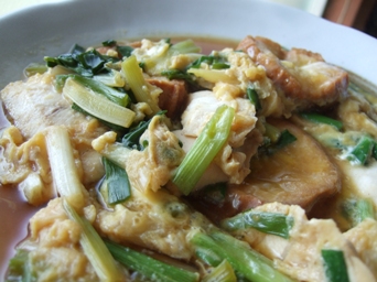 少しアレンジした「メカジキと仙台麩の卵とじ」を作りました。
