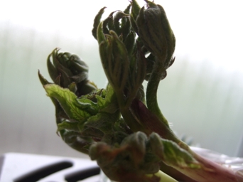 ウド。親指太さのものが4~5本(葉付き)で250円。