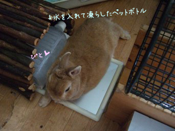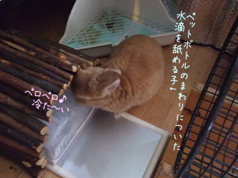 水を入れて凍らしたペットボトルにピトッとはり付いています。