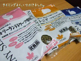 ペレットを追加購入しに行った店先で、試供品をいただきました。