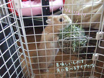 ↑ 美味しいチモシーを上の方に詰めてしまう飼い主・・・^^;
